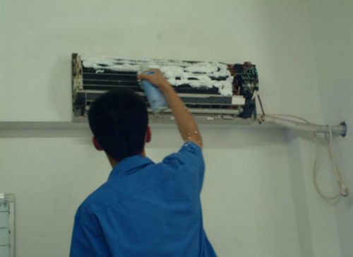 | 道里空调维修师傅给道里用户上门维修清洗空调。 |